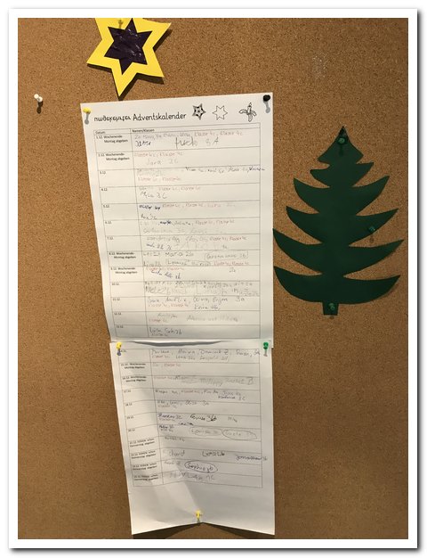 Die Kinder konnten sich in eine Liste in der Aula eintragen und brachten jeden Tag eine Kleinigekeit mit.