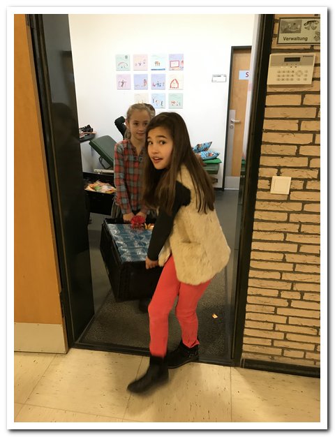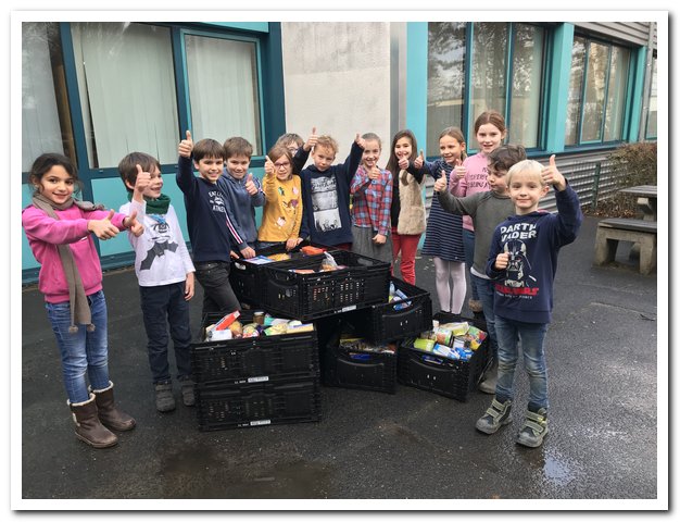 Die Kisten konnten heute voller Stolz an die Mitarbeiter der Meerbuscher Tafel überreicht werden, wo die Sachen morgen noch an bedürftige Mitbürger verteilt werden.