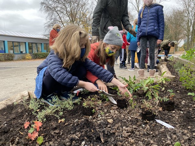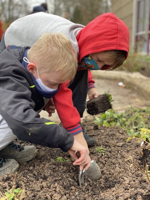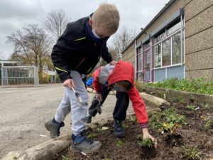 Nachdem unser Bauaktionstag leider ausfallen musste, haben alle Kinder der Martinus Schule letzten Mittwoch tatkräftig dafür gesorgt, dass alle bereit stehenden Pflanzen und Stauden noch in diesem Jahr einen Platz in den Beeten finden konnten und im kommenden Frühjahr dazu beitragen können, dass die Martinus Schule weiter aufblüht!