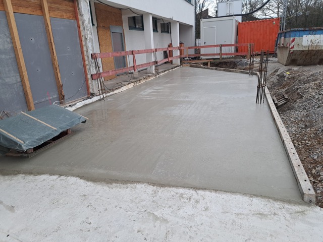 Nach dem Abriss alter Mauern, werden neue Wände gesetzt, Bodenplatten gegossen, spannende neue Formen sind erkennbar und die Kinder beobachten und stellen Vermutungen an.