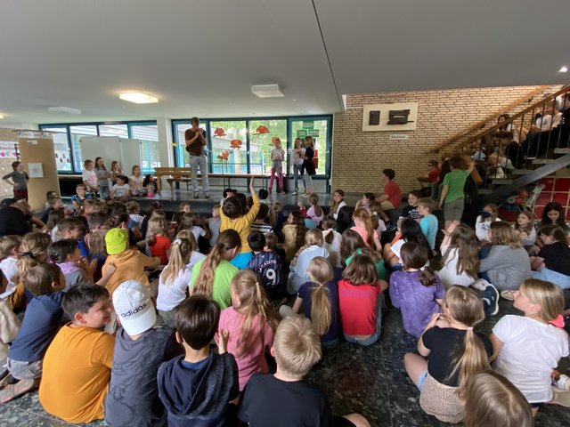 Mit einer rundum gelungenen Einschulungsfeier wurden die Pfötchen, Seehunde, Eisbären und Pinguine herzlich in der Martinus Schule willkommen geheißen. Nach einem ganz wunderbar liebevoll gestalteten Gottesdienst folgte eine kleine Willkommensfeier auf dem Schulhof, zu deren Gelingen die Patenklassen mit Liedern, Sonnenblumen und Gedichten beitrugen.