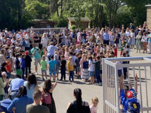 Im Anschluss ging es für die neuen Martinuskinder zu ihrer ersten Unterrichtsstunde durch ein Blumenspalier in die Klassen.